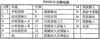 通常超再生接收机的灵敏度约-106DBM,所用器件多,稳定性差,加工复杂,而使用RX3310A的超外差接收机灵敏度可达-102DBM,而且外围元件少,集成化程度高,适合大规模生产。超外差接收机有声表稳频和LC稳频的两种,采用LC稳频的灵敏度高可达-104DBM,但是稳定性稍差,而声表稳频的灵敏度约-102DBM,稳定性好,这里提供的超外差接收机都为声表稳频的。 接收板B-L4 超外差插针式锁存型接收板:41x24x6毫米(25元一个) 接收板B-M4 超外差插针式非锁存接收板:41x24x6毫米(25元一个) 应用举例 发射手柄上设置有四个按键,当按动时发射机上的按键,发射电路会被激活而进入发射状态,发射机静态时不耗电。机内装配的电池只被用于点发射状态。当用于报警设定和电器开关时,每节电池一般可用到一年以上,电池的容量为45mAH。 我们为了测试遥控模块工作是否正常,可以在接收模块的VCC和GND端加一个5~6伏的直流电压,也可以通78L05三端稳压芯片稳压获得5伏稳压工作电源,在10、11、12、13、17端分别对地接一个发光二极管(发光二极管负极接地)这里提供的遥控模块的接收机都是锁存型的,也就是说能够保持遥控信号的瞬间状态,假设我们按动发射机的A按键时,与其对应11路的LED即可发光,松开发射机的A按键,11路的LED仍然点亮处于自保持状态(锁存),直到按动其它的按键如B键时,11熄灭而12处的LED点亮。17端是解码有效输出端,不论按动发射机的哪一个按键,只要解码成功即17端变成高电平,直到发射机停止发射。 用途:用于遥控一个电路的开和关,或者一盏灯的亮与灭。